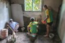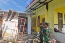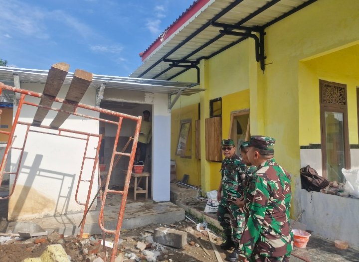 Di lapangan, terlihat prajurit TNI berdiri di halaman rumah bergaya minimalis berwarna putih dengan atap merah gelap, dikelilingi pepohonan hijau lebat. Di sisi lain, ada pula tim yang sedang berdiskusi di depan rumah kuning cerah dengan pekerjaan renovasi yang sedang berlangsung lengkap dengan perancah besi, ember cat, dan tumpukan material. Semua itu mencerminkan progres nyata rehabilitasi Rumah Tidak Layak Huni (RTLH) bagi beberapa keluarga, perbaikan fasilitas umum seperti MCK, serta peningkatan akses jalan desa.