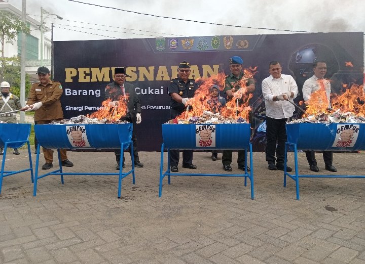 Lebih lanjut, Bupati menjelaskan bahwa total barang yang dimusnahkan mencapai 4,2 juta batang rokok dengan berat sekitar 8 ton. Nilai kerugian negara yang berhasil diselamatkan dari penindakan ini mencapai Rp6,3 miliar.