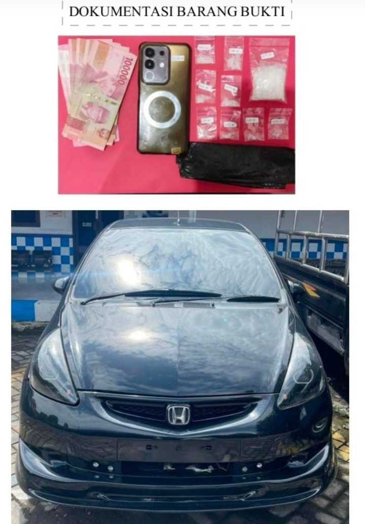 Selain sabu, polisi juga mengamankan barang bukti berupa satu unit ponsel Vivo, uang tunai Rp700.000, satu kantong plastik hitam, serta satu unit mobil Honda Jazz yang digunakan para pelaku.