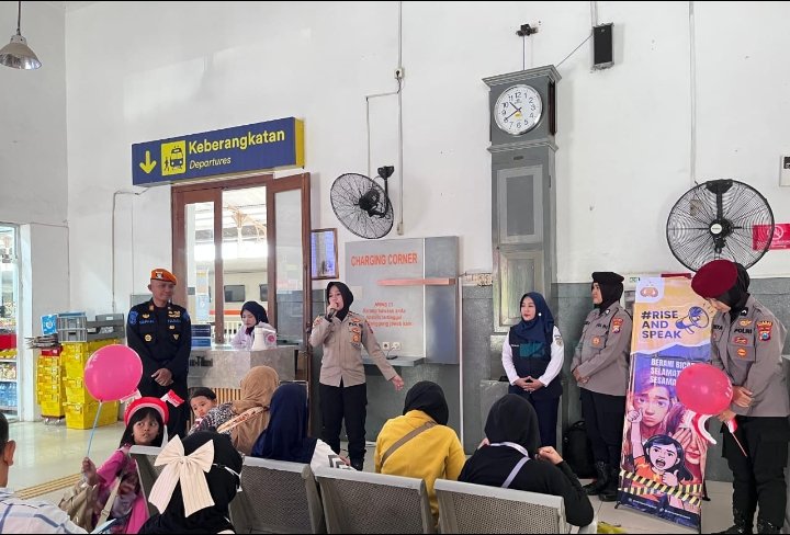 PASURUAN| Kabarnewsday – Dalam rangka memperingati Hari Jadi ke-77 Polisi Wanita (Polwan) Republik Indonesia, Polwan Polres Pasuruan melaksanakan kegiatan Rise and Speak di Stasiun Bangil pada Kamis (28/8/2025).